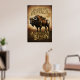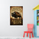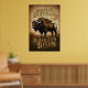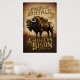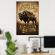 A steampunk bison stands in a field, its body adorned with intricate gears and pipes. The background suggests a western setting.