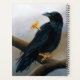 Steampunk raven with a mechanical gold wind-up in his back making him a mechanical raven sitting on a tree limb on a winter day.