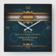 Steampunk, brass on dark teal gears, Monogram Square Wall Clock