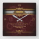 Steampunk, brass on marroon gears, Monogram Square Wall Clock