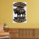 A mechanical buffalo stands on a platform, adorned with gears and pipes.