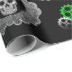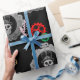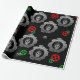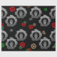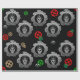 Cool wrapping paper with a steampunk theme. The background is deep black and the design includes skulls and gears. Christmas colors of red, green, gold and silver make this gift wrap perfect for the holidays and beyond.