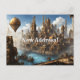 Boats powered by steam navigate a river that flows through a fabulous steampunk city, as an enormous hot air balloon glides overhead on this change of address postcard. Perfect for anyone who loves steampunk and fantasy.