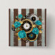 Steampunk Clock and Turquoise Roses on Striped 15 Cm Square Badge