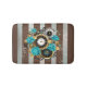 Steampunk Clock and Turquoise Roses on Striped Bath Mat