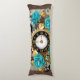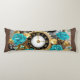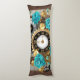 Steampunk Clock and Turquoise Roses on Striped Body Cushion