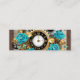 Steampunk Clock and Turquoise Roses on Striped Calling Card