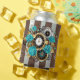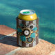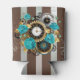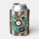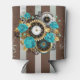 Steampunk Clock and Turquoise Roses on Striped Can Cooler