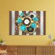 Steampunk Clock and Turquoise Roses on Striped Canvas Print