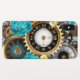Steampunk Clock and Turquoise Roses on Striped Case-Mate iPhone Case