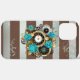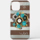 Steampunk Clock and Turquoise Roses on Striped Case-Mate iPhone Case
