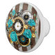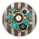 Steampunk Clock and Turquoise Roses on Striped Ceramic Knob