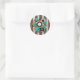 Steampunk Clock and Turquoise Roses on Striped Classic Round Sticker