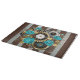Patterned, antique watch, adorned with jewellery, gold hour hands and Latin numerals with turquoise roses on brown, striped background. Steampunk style.