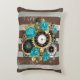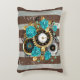 Steampunk Clock and Turquoise Roses on Striped Decorative Cushion