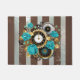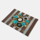 Steampunk Clock and Turquoise Roses on Striped Doormat