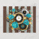 Steampunk Clock and Turquoise Roses on Striped Flyer