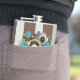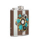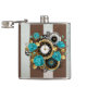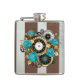 Steampunk Clock and Turquoise Roses on Striped Hip Flask