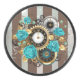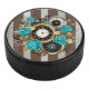 Steampunk Clock and Turquoise Roses on Striped Hockey Puck