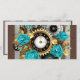 Steampunk Clock and Turquoise Roses on Striped Holiday Card