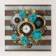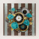 Steampunk Clock and Turquoise Roses on Striped Jigsaw Puzzle