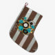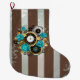 Steampunk Clock and Turquoise Roses on Striped Large Christmas Stocking