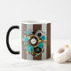 Steampunk Clock and Turquoise Roses on Striped Magic Mug