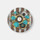 Steampunk Clock and Turquoise Roses on Striped Magnet