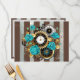 Steampunk Clock and Turquoise Roses on Striped Menu