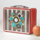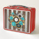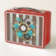 Steampunk Clock and Turquoise Roses on Striped Metal Lunch Box