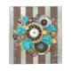 Steampunk Clock and Turquoise Roses on Striped Notepad