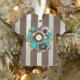 Steampunk Clock and Turquoise Roses on Striped Ornament