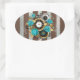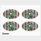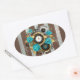 Steampunk Clock and Turquoise Roses on Striped Oval Sticker