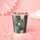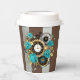 Steampunk Clock and Turquoise Roses on Striped Paper Cups