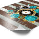 Steampunk Clock and Turquoise Roses on Striped Photo Print