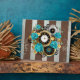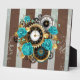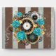 Steampunk Clock and Turquoise Roses on Striped Plaque
