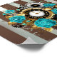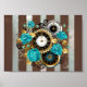 Steampunk Clock and Turquoise Roses on Striped Poster