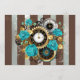 Steampunk Clock and Turquoise Roses on Striped Programme