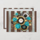 Steampunk Clock and Turquoise Roses on Striped Save The Date