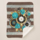Steampunk Clock and Turquoise Roses on Striped Sherpa Blanket