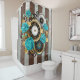 Steampunk Clock and Turquoise Roses on Striped Shower Curtain