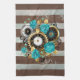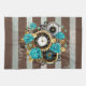 Steampunk Clock and Turquoise Roses on Striped Tea Towel