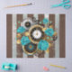 Steampunk Clock and Turquoise Roses on Striped Tissue Paper