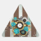 Steampunk Clock and Turquoise Roses on Striped Triangle Sticker