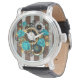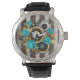 Steampunk Clock and Turquoise Roses on Striped Watch