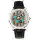 Steampunk Clock and Turquoise Roses on Striped Watch