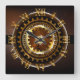 Antique, fantastic watches with gold and brass gears on a brown, rusty background. Steampunk style.