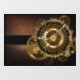 Antique, fantastic watches with gold and brass gears on a brown, rusty background. Steampunk style.
