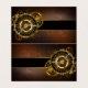Antique, fantastic watches with gold and brass gears on a brown, rusty background. Steampunk style.