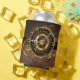 Antique, fantastic watches with gold and brass gears on a brown, rusty background. Steampunk style.